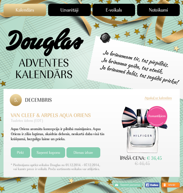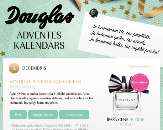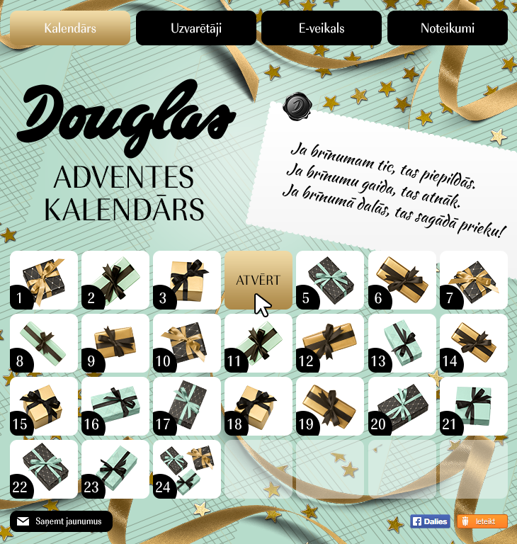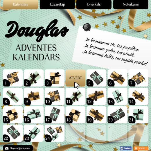 Each day one could open Advent calendar and receive a discount for a certain product. The user participates in the raffle of that certain product by sharing this information about the app.