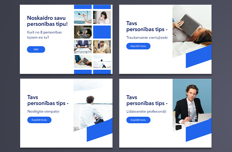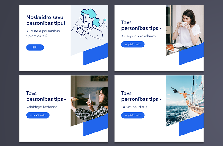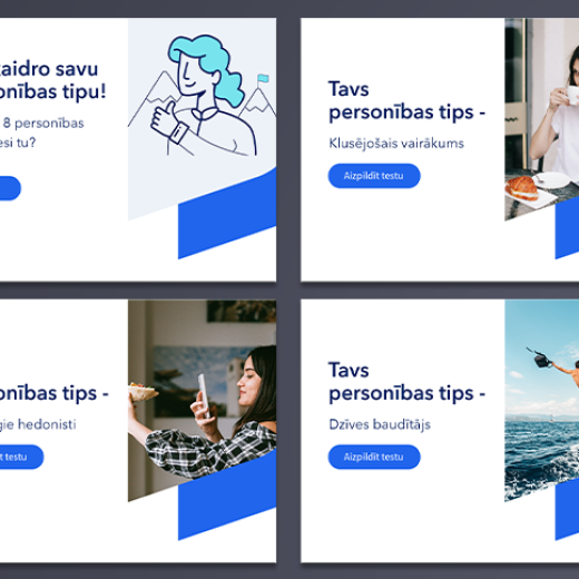 Offering personalized content to TV viewers is essential to promote a positive viewing experience. Therefore, together with Tet, we created a quiz based on the data from the study led by the University of Latvia. After completing the quiz, everyone could find out which of the eight lifestyle and personality clusters resembles them. At the end of the quiz, each viewer got specially for their personaloty selected movies in the Shortcut application.