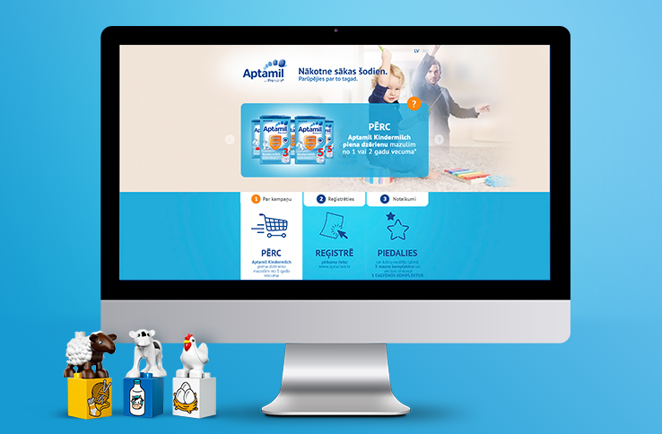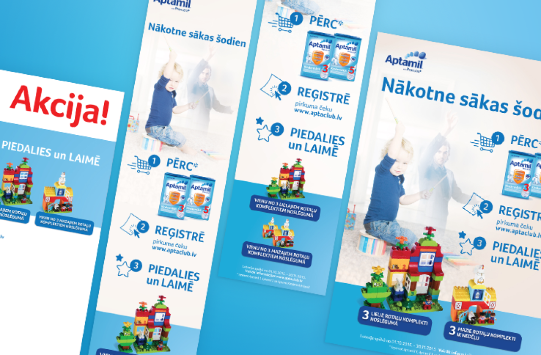 We have never tried to avoid challenges, therefore we were passionate to get started on the rather ambitious and carefully planned project– the Aptamil campaign that took place in three countries, involved hundreds of participants and was a truly rewarding experience altogether. We did it! The main achievements: development of the campaign strategy for Latvia, Lithuania and Estonia, preparation of POS materials, banners, TVC adaption, communication in the social media and advertising.