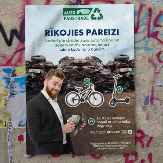 To be able to make responsible decisions, it is important to take care of the environment. And, just like Autoparstrade.lv, Armadillo also care about every step towards a better future for us and our descendants. That's why we happily created the "Do the right thing 2022" lottery campaign, in which everyone who handed over their car for recycling during the lottery period had the opportunity to win valuable prizes, as well as learn that proper car disposal does not pose a threat to the environment. As part of this campaign, Armadillo was responsible for creating the visual design, coordinating the lottery, creating and recording the text of the radio advertisement, as well as promoting the campaign on social media.
