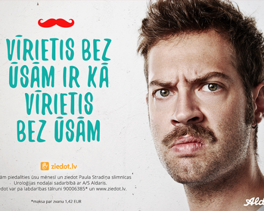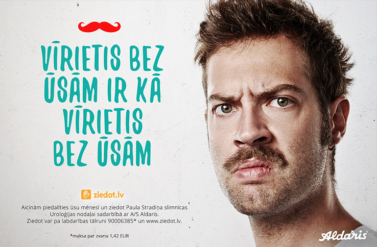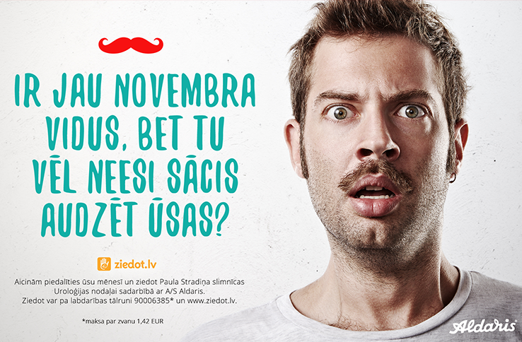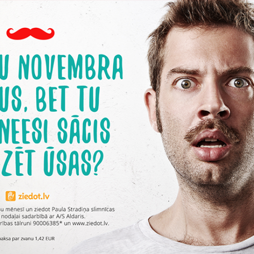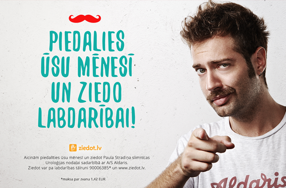 The campaign aims to invite men to think about their health and in November or Moustache month to grow a mustache - to draw their attention to the health problems and prostate cancer, as well as in portal www.ziedot.lv donate funds to Pauls Stradins Clinical University Hospital Urology Department much needed medical materials purchase .