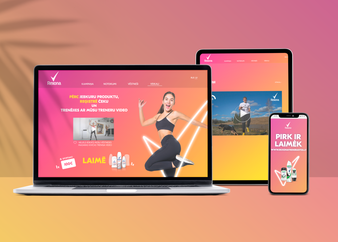 We believe that people feel truly alive whenever they are actively moving. When a person feels how the blood flows in their body and the heart beating faster, and when they breathe in and out, their inner person becomes stronger and healthier. That's why we created the Rexona training contest. We asked trainers and sports enthusiasts to send in their exercises. We published them on a specially created website rexonatrenini.lv, and they were available to everyone to follow at any time and place. Everyone who participated in this campaign had the opportunity to vote for what they thought was the best exercise and trainer. We created a website, visual campaign materials, texts, a social media strategy, as well as ensured the involvement of influencers. #MOVEMORE (#KUSTIESVAIRĀK)