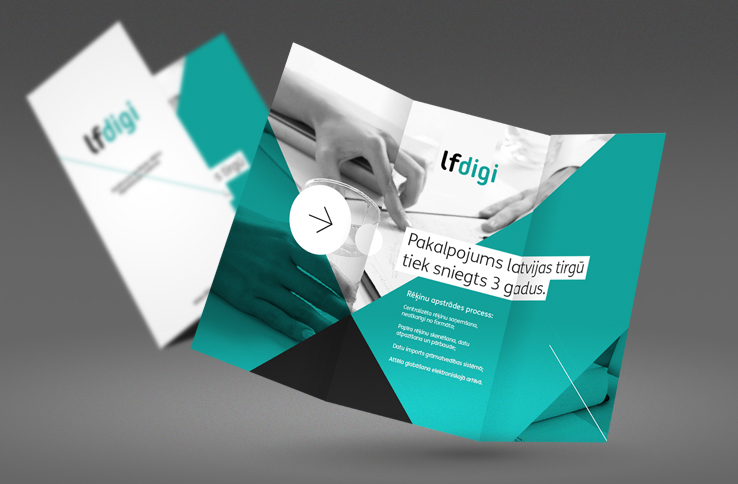 Digitalisation of the company’s incoming invoices – a modern service that requires a modern solution in every material. When preparing the informative booklet we were given a task, logo and freedom to create. This way we’ve created the booklet that is easy to review, gracefuly vibrant and modern. It fully met the client’s expectations.