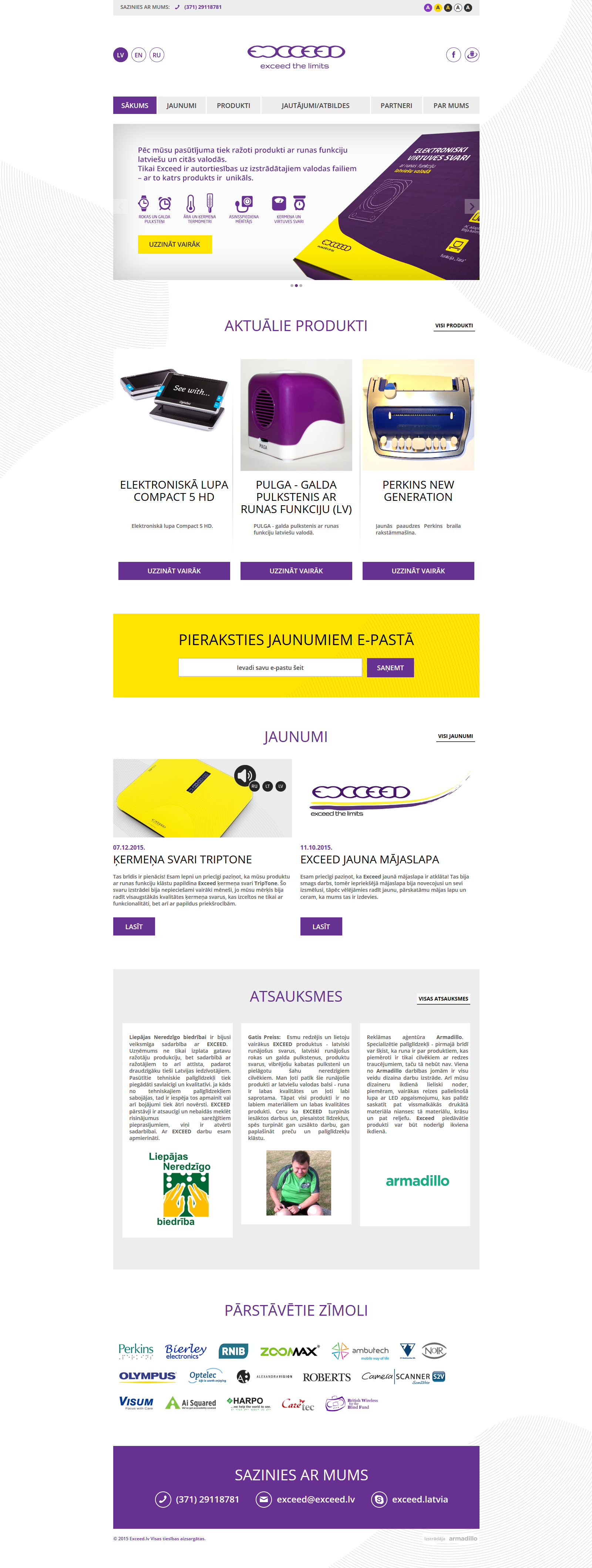 Exceed - the first Latvian company that is specialized in typhlotechnique or special aids for people with visual impairments. The goal - to cooperate with the world's leading manufacturers, ensuring high quality and customized products. Easy, but modern and thoughtfully to the smallest nuance to every visitor without any problems can find exactly what he is looking for.