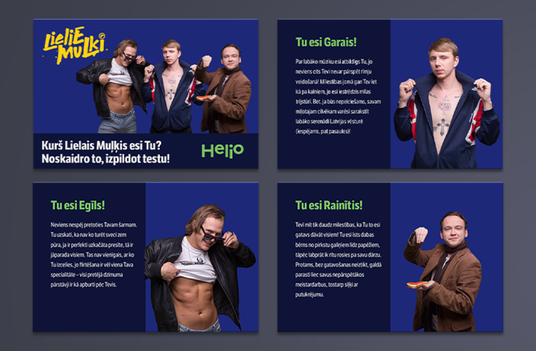 It is good to laugh and start the day with a smile on your face! For that, we must thank the main characters of the local TV series “Big Fools” (“Lielie Muļķi”), who stand out with witty jokes, acting funny, and amusing ideas. So every fan of the beloved series could determine which character they resemble, Armadillo created a quiz with ten frivolous questions that not only brought out the laughter but also allowed people to get to know the characters better.