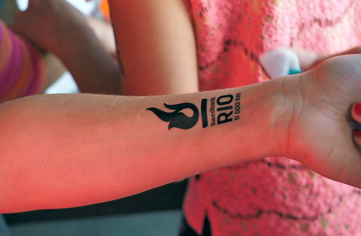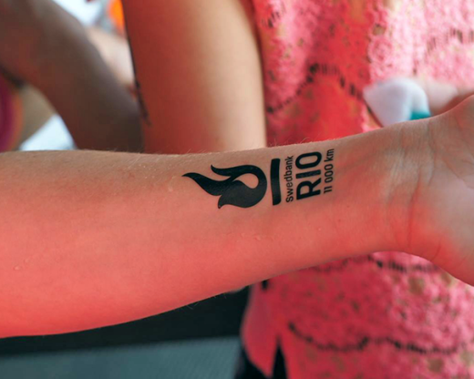 Design Atpakaļ Swedbank We wish good luck for Swedbank Latvia employees taking the “11 000 km to Rio" challenge. Hope that our created tattoos encourage and give strength to reach the goal! Atpakaļ