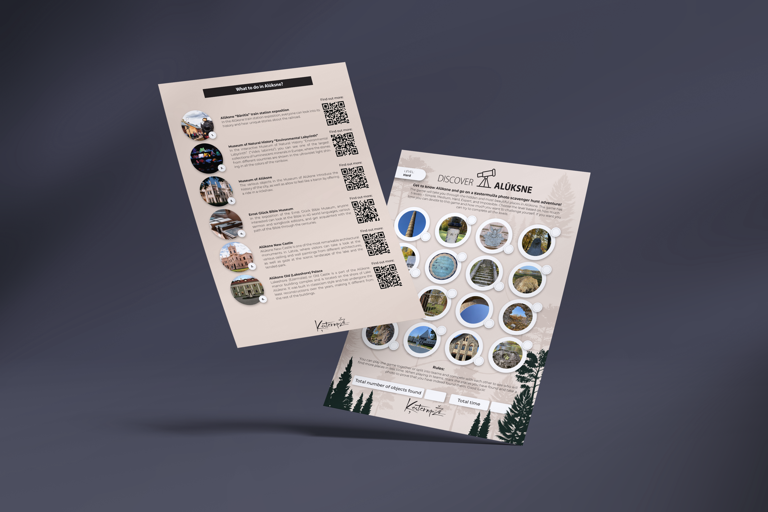 We work hard, and we play harder. That is why creating the informative brochure and the photo scavenger hunting game for Ķestermuiža brought us great joy! To make the Ķestermuiža guest experience a one-of-a-kind adventure, we created print and texts for them and developed the visual design, created the homepage and its design, as well as carried out other design works that fully reveal the essence of Ķestermuiža. Thus, for those who want to enjoy the peace and indulge in many different activities, everything they need is easy and quick to find.