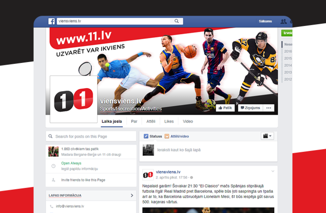 We offer development of communication strategy, design solutions and administration of 11.lv Facebook page.