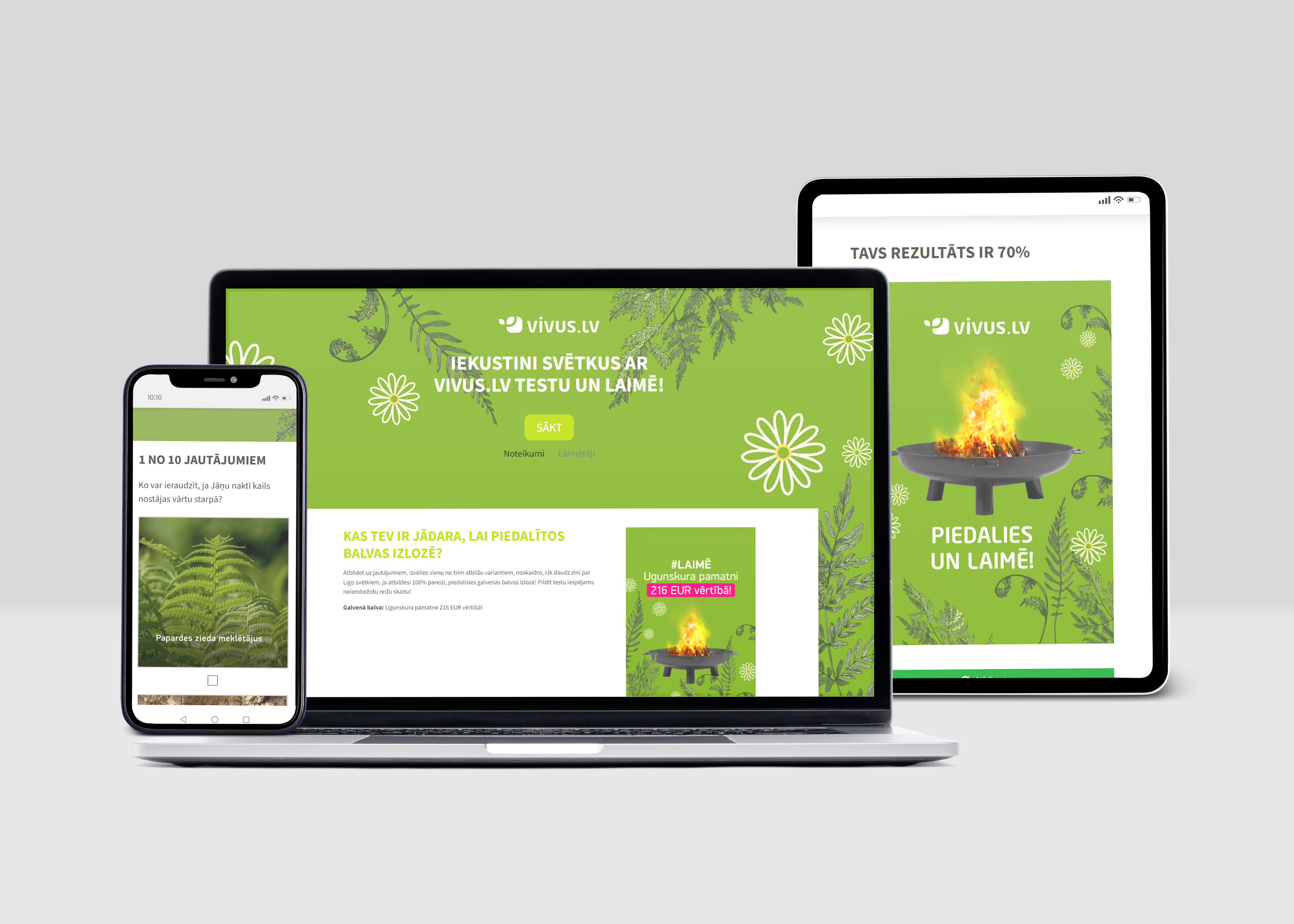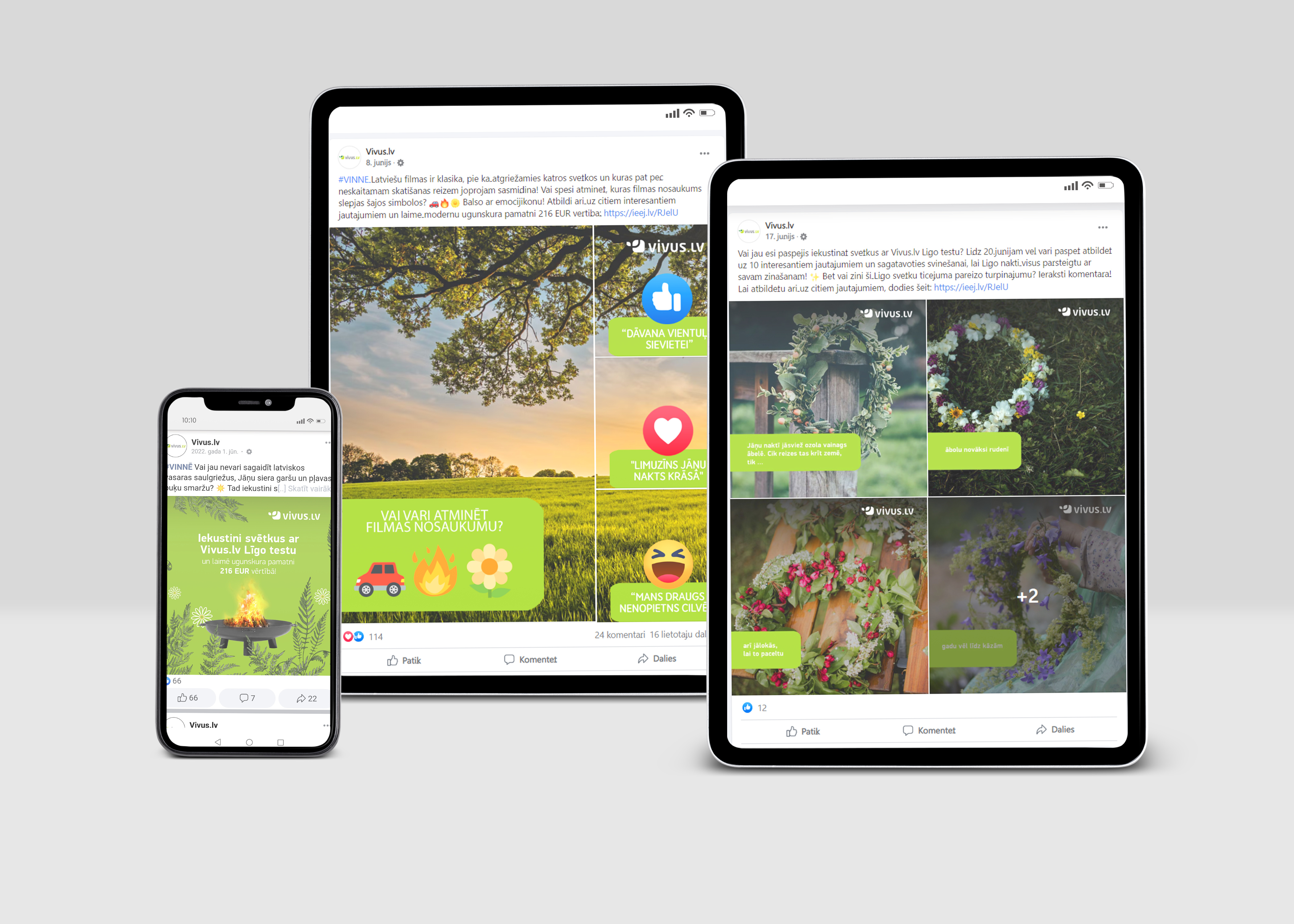 Some Armadillo team members spend Midsummer's Day and Eve according to traditions, while others prefer to watch Latvian films. But it doesn't matter how we spend these two magical days, because the most important thing is to celebrate this holiday, right? To bring the festive mood to us and others, as well as to put Vivus.lv followers to the test, we created a Midsummer test. We prepared 10 questions about Midsummer traditions, films, songs, and other topics, carried out design works, and created social media communication, inviting people to get the holidays started with the Vivus.lv Midsummer test and participate in the draw for a prize—a modern fire pit.