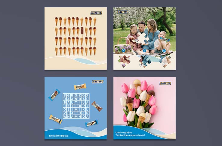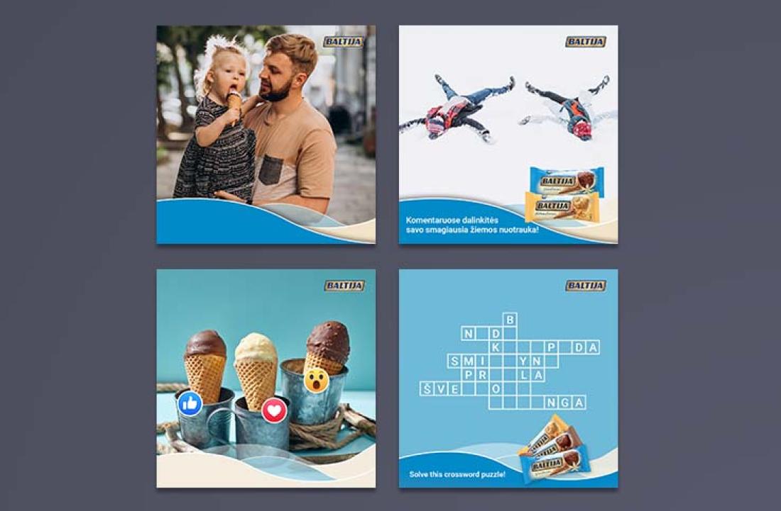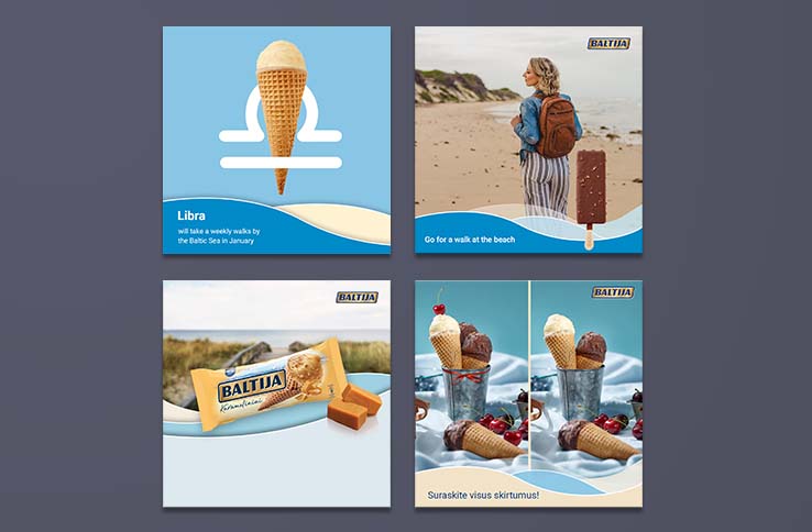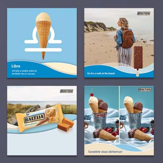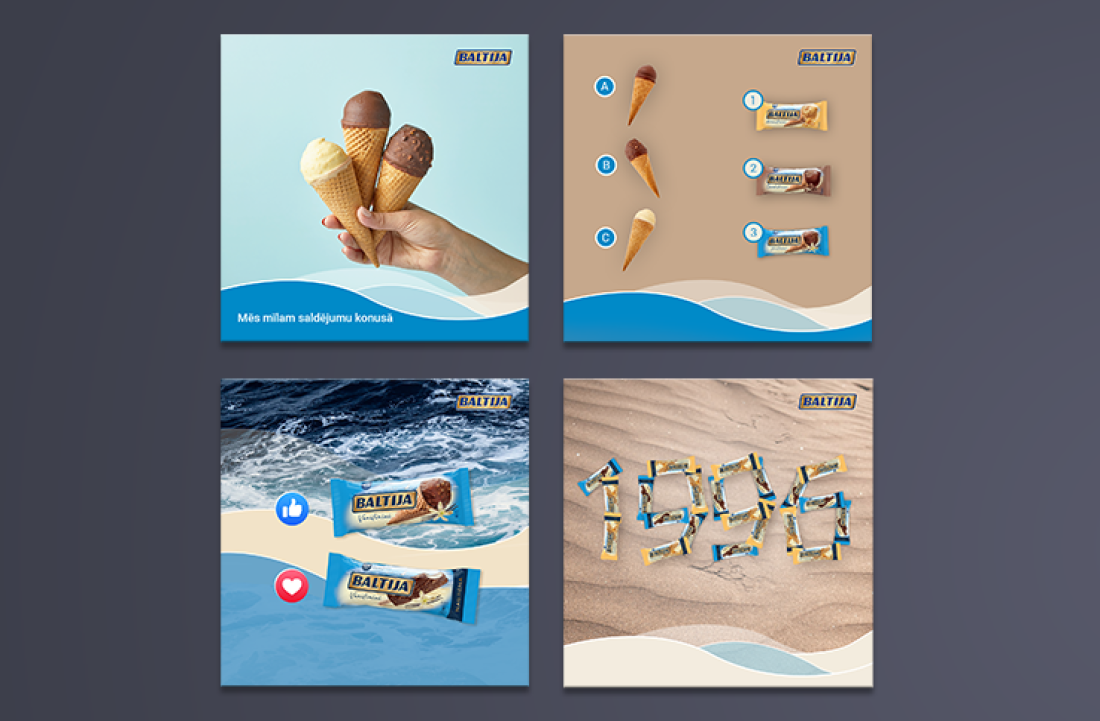 The Baltic Sea is one of our greatest values! Our life is also unimaginable without gorgeous sunsets, windy walks and refreshing swims in summer. Love for nature, sea and family makes us and the ice cream brand Baltija an excellent team! We are very happy to create the content of social media, offering a visual solution appropriate to the sea theme. Because if you can't be by the Baltic Sea, you can always be with Baltija!