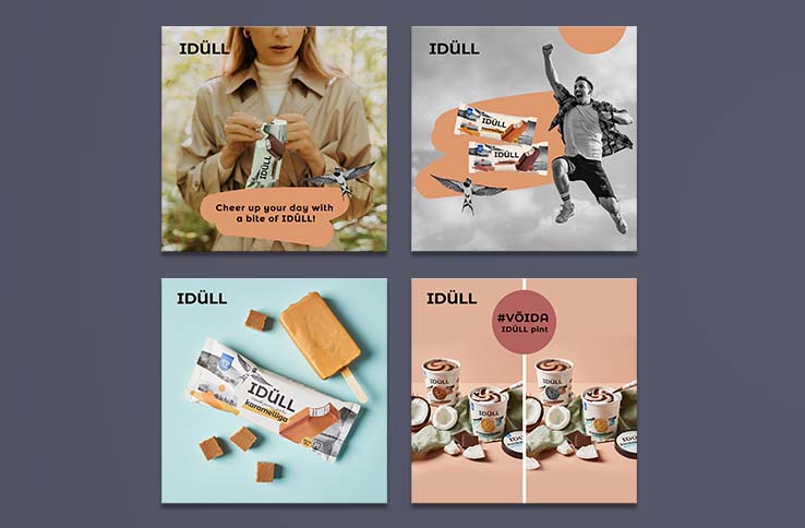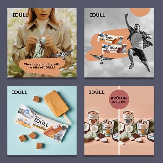 Catch a moment with ice cream in your hands… Yes, that's exactly the motto of the Estonian ice cream brand IDÜLL! It is not difficult to create a tasteful and modern design, organize a photo session and support marketing campaigns for such modern and delicious ice cream. We just have to rely on our instincts, because we are also looking for beautiful everyday simplicity. Dressing the core values of the brand in beautiful design and inspiring words is like a pleasant refreshment for our team on a hot summer day!