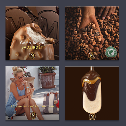 Mēs atbildam par zīmola vizuālo noformējumu, komunikācijas stratēģiju un balsi sociālajos medijos, kā arī pārvaldām reklāmas, lai Magnum liktu aizmirsties ikvienam tā baudītājam.