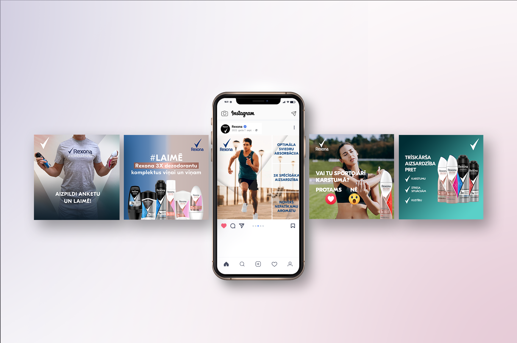 To have a healthy and strong body and mind, a person must move everyday! And to make sure nothing could stop you from going for a short run or workout at the gym in the evening, Rexona does everything yo ensure everyone feels comfortable during intense training, but our job is to take care of Rexona's social media communication, creating inspiring visuals and accompanying texts.