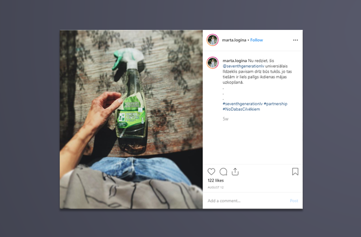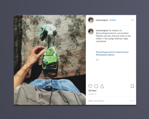 Rīkojoties šodien, mēs ietekmējam rītdienu! Seventh Generation – pasaulslavens zīmols, kura misija ir domāt ne tikai par cilvēkiem šodien, bet arī par planētu un nākamajām septiņām paaudzēm. Seventh Generation trauku, veļas un mājas uzkopšanas līdzekļi ienesīs Tavās mājās svaigumu un tīrību - šo produktu ražošanā izmantotas augu izcelsmes sastāvdaļas, un to iepakojums ir radīts no pārstrādātas plastmasas.