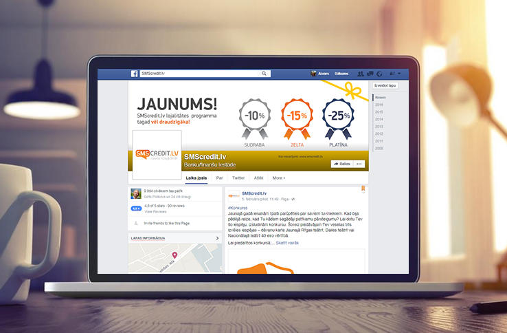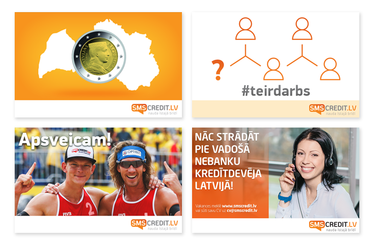 If the client is the leader in the field, it also needs to be reflected in the social networks sustaining a high standard in the process of communication. Company’s stability and strength has to be represented in an elegantly reserved manner, tempting people to sharpen their mind with some tricky problem solving or educate them with interesting facts from time to time, certainly keeping in mind that the projects initiated or supported by the client shall not escape the spotlight. We offer the service of developing the concept of communication, introducing and sustaining strategy and design solutions for the SMScredit.lv social network accounts, and the support in all the marketing activities.