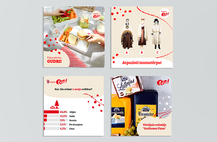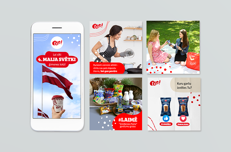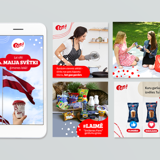 We support local producers, local businesses, and local shops. Administering "veikals top!" social media accounts on Instagram, Facebook, and TikTok, we emphasize the pleasant moments and fun happenings at the local store "top!". You can always come out of "top!" with a basket full of bargains, but from the Armadillo office with a mind full of inspiring ideas!