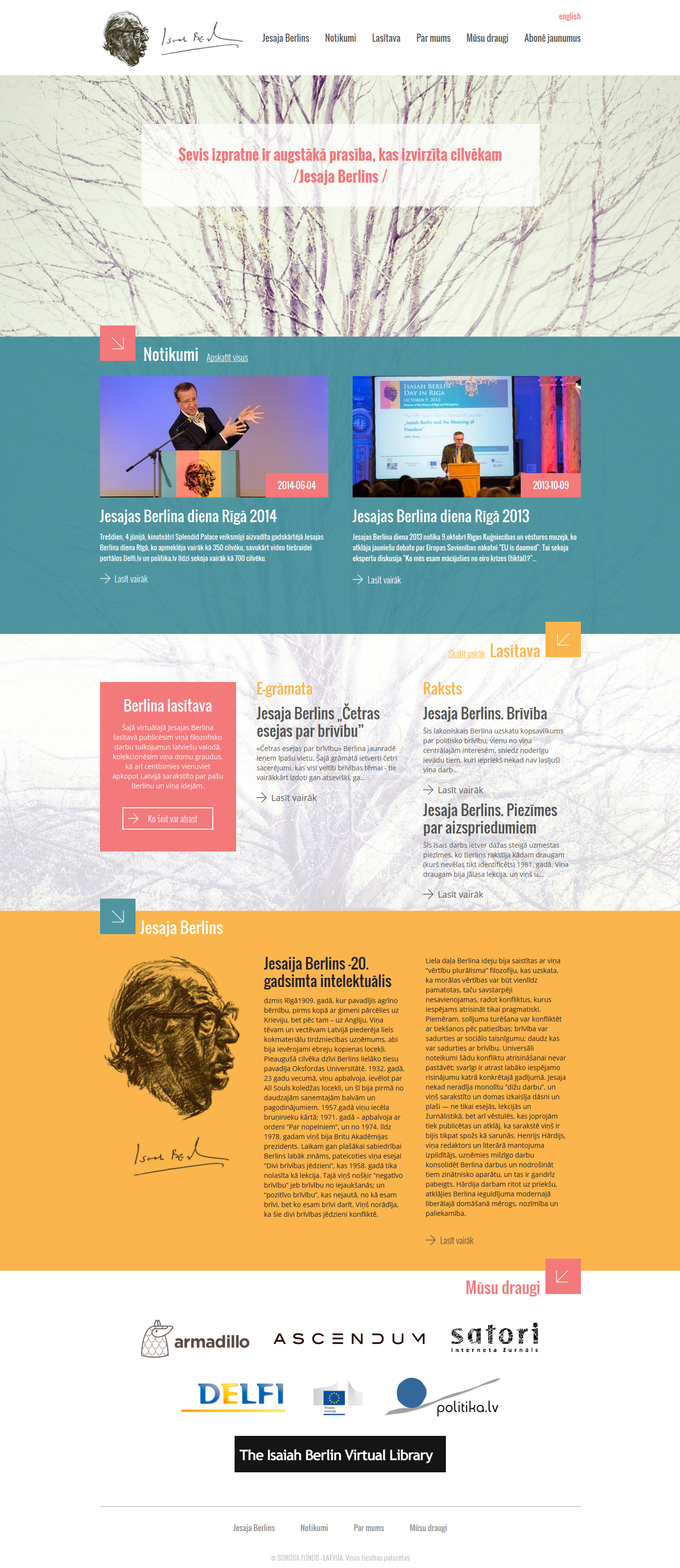 Latvian Isaiah Berlin society promotes philosophy idea rooting into the Latvian society by organizing the yearly memorial lecture dedicated to Isaiah Berlin. Light, thought promoting, emphasizing ideas and importance of this great personality, contributing to the public education and culture, this is the homepage – this is true value.