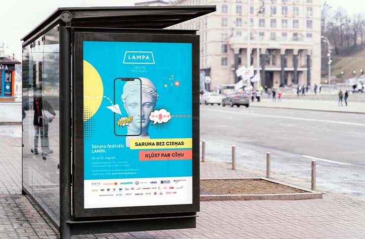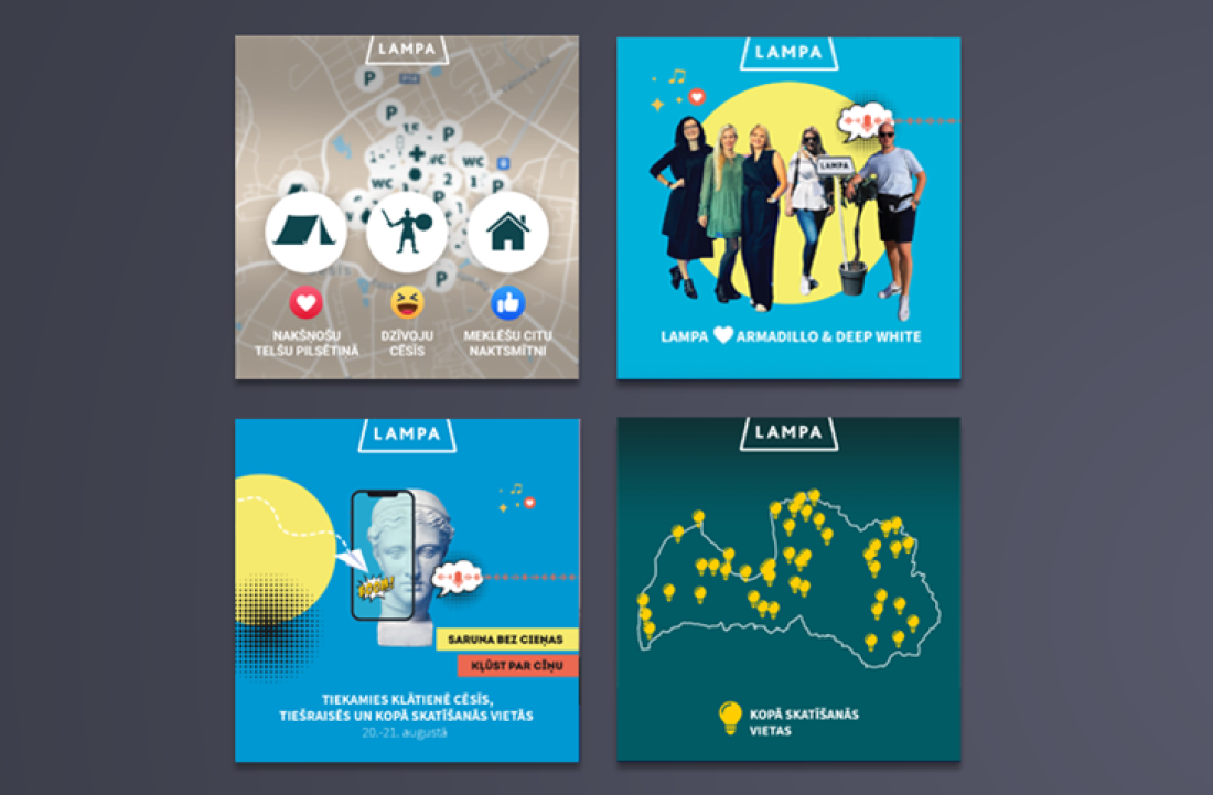 For the seventh year in a row, we can call ourselves a part of the Converation festival LAMPA creative team! This year's overarching theme was respect, which could be seen on every visual, every banner, every social media post. Knowing that conversation without respect becomes a fight, we listened to each other and our partners to create a great festival. Because of the fact that this year the festival was available both in the virtual environment and in person in Cesis, there were new challenges. We worked on the creative solution, and our lead designer also created beautiful phone screen wallpapers. As usual, we also took care of website design, social media communication and design work, as well as created an Instagram filter and GIFs, digital cards and a respect quiz.