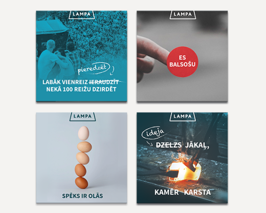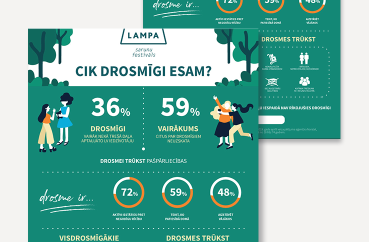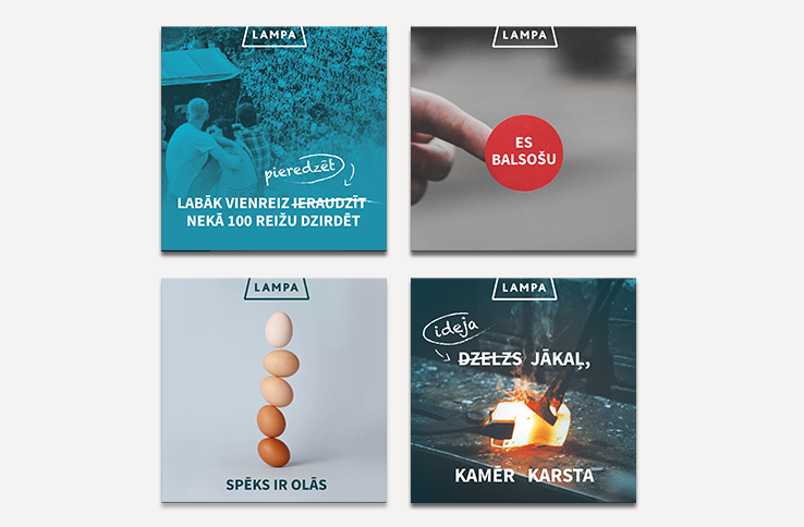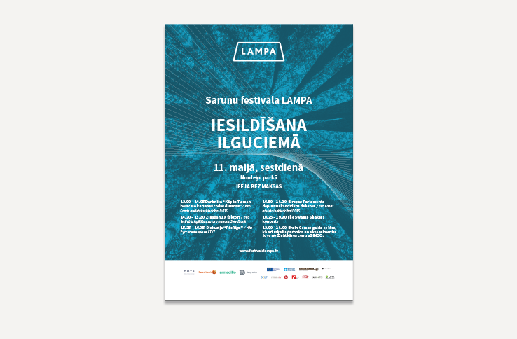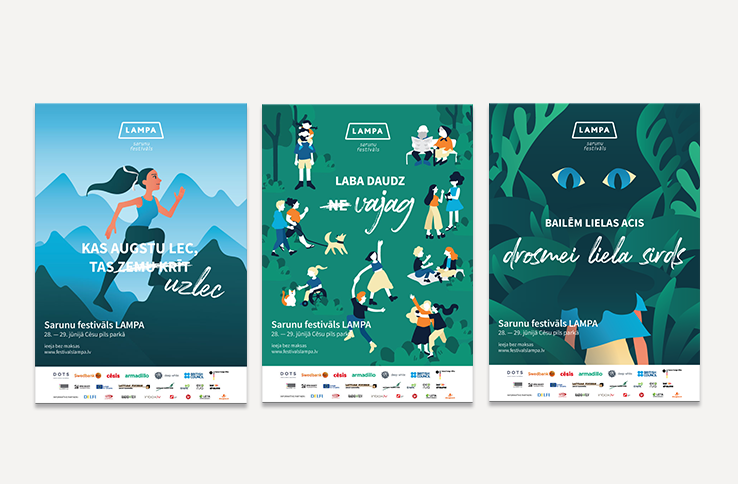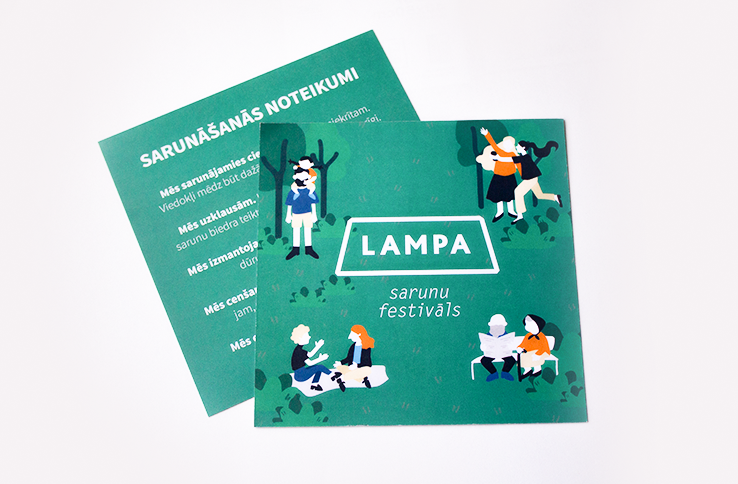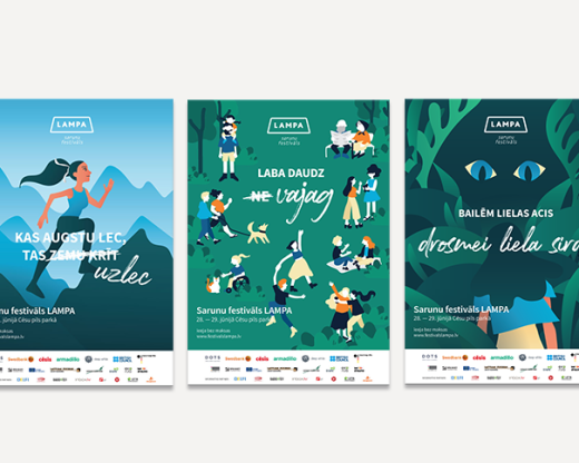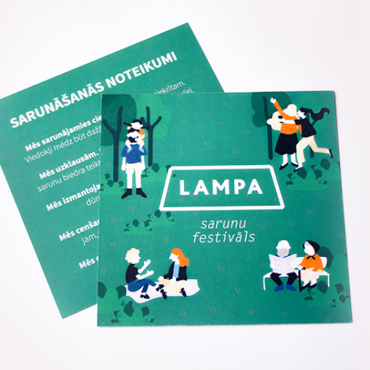 Mums jau piekto gadu bija iespēja būt daļai no sarunu festivāla LAMPA radošās komandas! Par šī gada virstēmu izvirzījām drosmi, caur kuru katrs no mums var attīstīties un nebaidīties izpaust savu atšķirīgo viedokli, lai diskutētu par sabiedrībā svarīgām tēmām un būtu atvērti jaunajam. Lai festivāls varētu veiksmīgi norisināties, strādājām pie radošā risinājuma izstrādes, kur šogad mūsu māksliniece izveidoja zīmētu stāstu sēriju par drosmi un tautā zināmiem teicieniem ar drosmīgu pārveidi. Kā katru gadu rūpējāmies arī par mājaslapas dizainu, sociālo tīklu komunikāciju un dizaina darbiem.