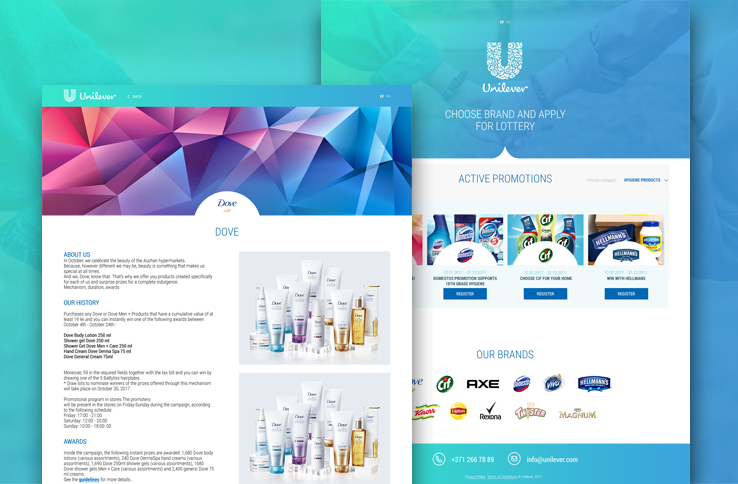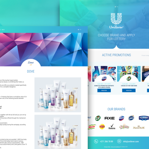 Lai apvienotu visas Unilever pārstāvēto zīmolu loterijas lietotājam un uzņēmuma darbiniekiem ērtā veidā visā Baltijā, izstrādājām responsīvu mājaslapu Unilever loterijām, kurā Unilever darbinieki un aģentūras var ērti izveidot, monitorēt loterijas un izlozēt laimīgos bez programmētāja iesaistes. Ikdienā, rīkojot loterijas citiem klientiem, mēs zinām, kā atvieglot darbu ar tām.