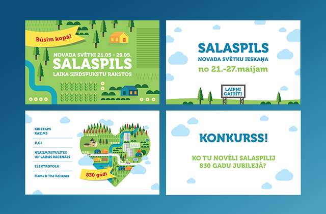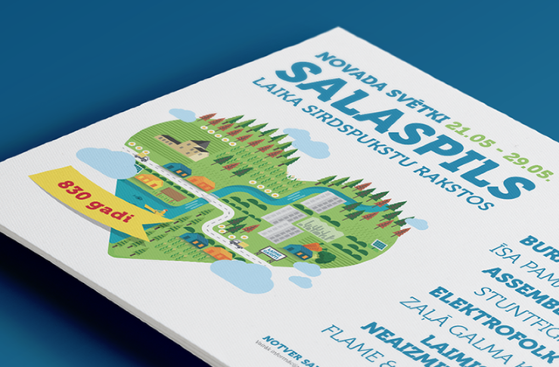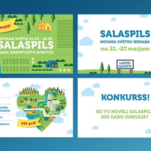 Salaspils 830 gadu jubileja - lielisks iemesls grandiozām pilsētas svētku svinībām. Lai ierautu Salaspils laika sirdspukstu rakstos gan Salaspils, gan tuvumā esošo reģionu iedzīvotājus radījām: svētku saukli; vizuālo noformējumu plakātiem un vides stendiem; banerus; sociālo mediju atbalstošo komunikāciju.