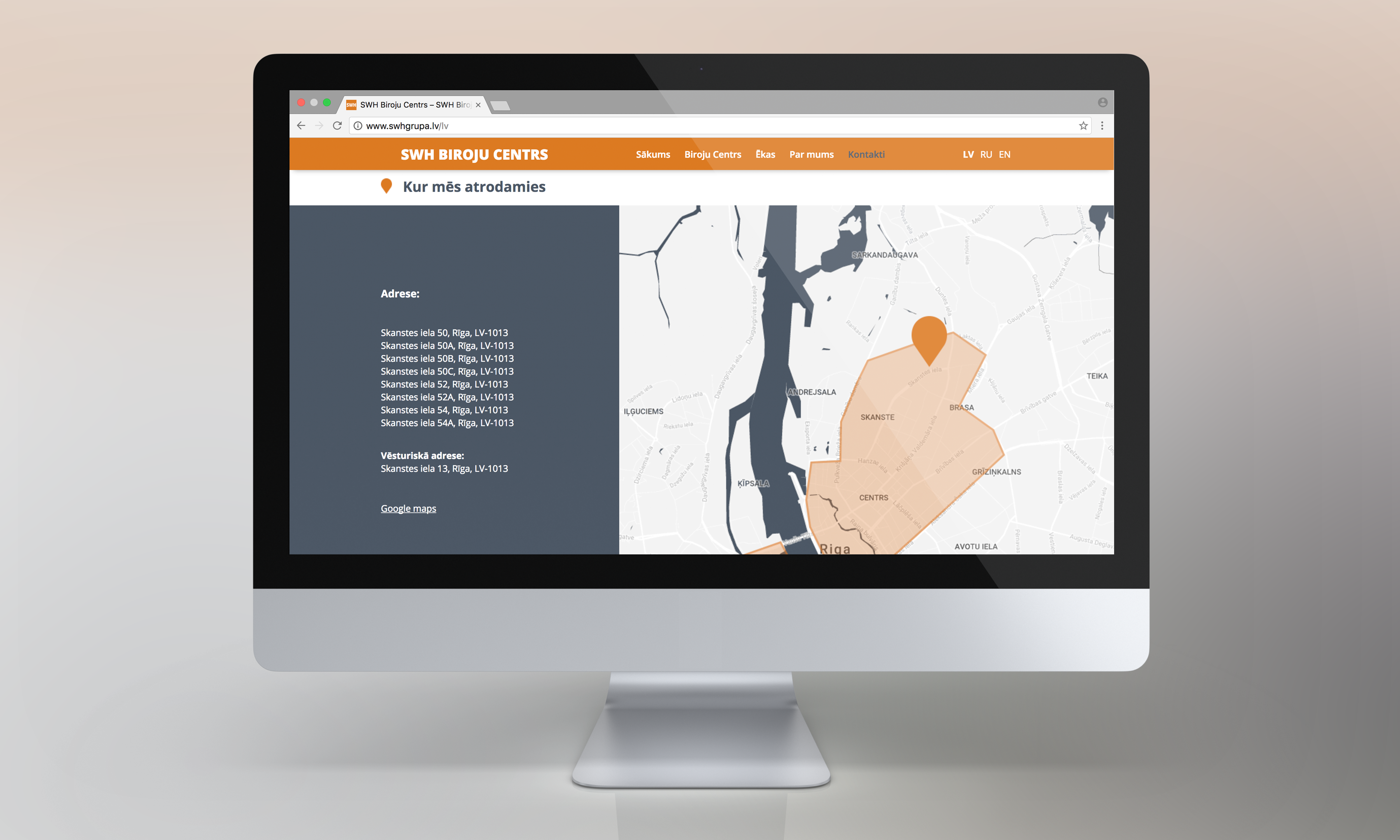 SWH grupa, kas pastāv jau vairāk kā 20 gadus un nodarbojas ar dažādiem biznesa virzieniem, savam ēku kompleksam vēlējās izveidot mājaslapu, tāpēc Armadillo profesionālie speciālisti veica mājaslapas izstrādi: