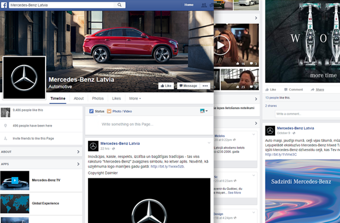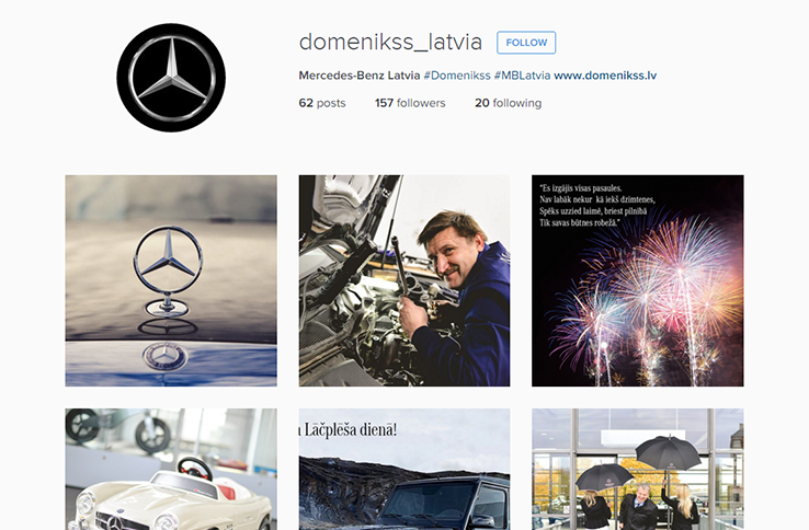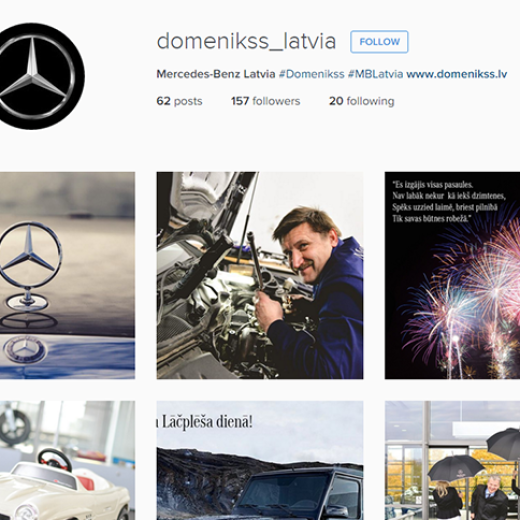 Komunikācijas koncepta, stratēģijas un dizaina izstrāde un uzturēšana Mercedes-Benz Latvia, Domenikss un Baltijas Auto Centrs sociālo mediju kontiem, mārketinga aktivitāšu atbalsts.